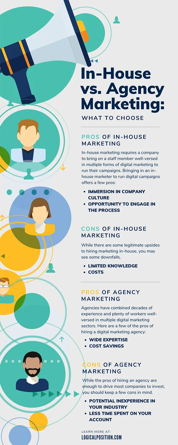 In-house marketing can be more affordable in the short term, but it may be less cost-effective in the long run. An agency can provide economies of scale and access to tools and resources that you may not be able to afford on your own.